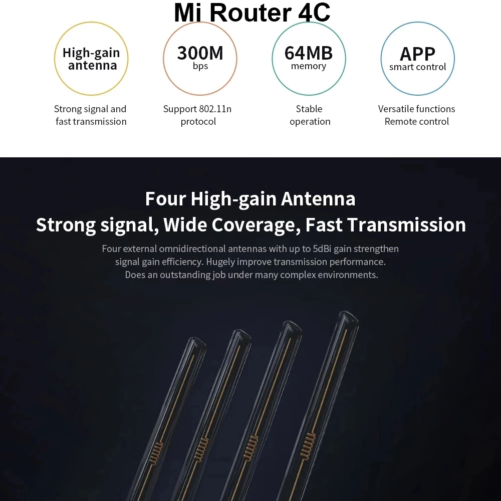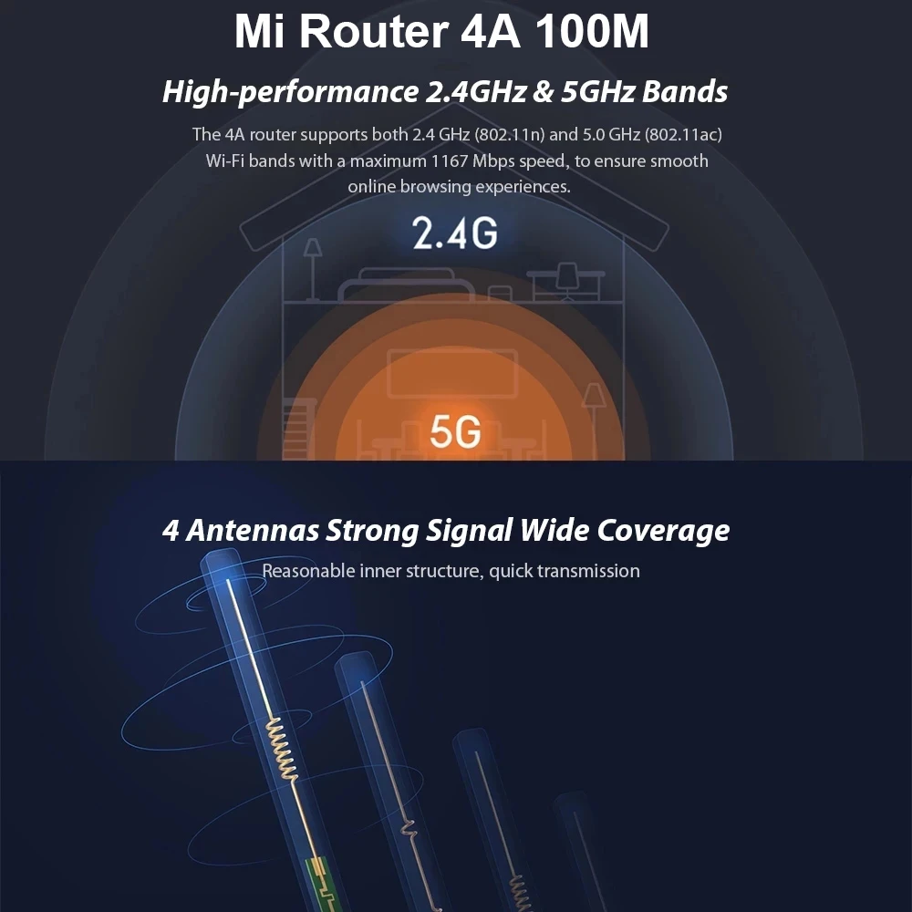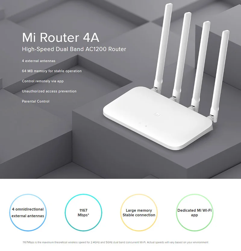 Xiaomi Mi роутер 4A беспроводной WiFi 2,4 ГГц 5,0 ГГц двухдиапазонный 1167 МбитсMi WiFi роутер 4C 64 Мб 300 Мбитс 2,4G высокоскоростной беспроводной