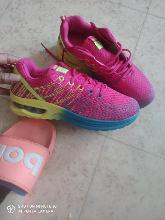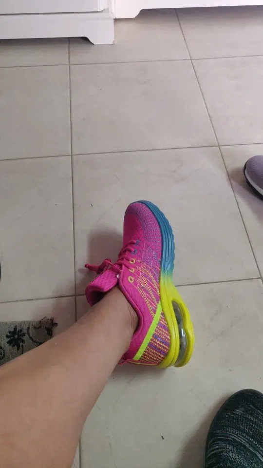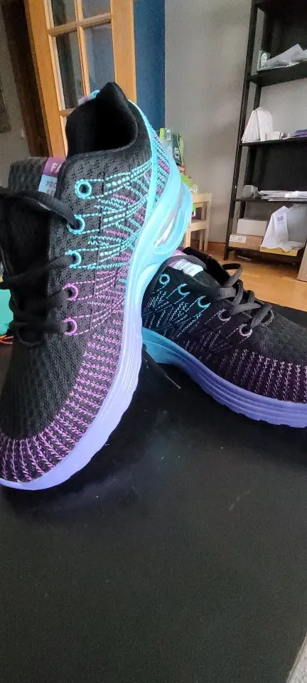Доставка заняла всего две недели! Выглядят так же как и на фотографиях, очень красиво и ярко! Нога чувствует себя очень комфортно, чувствуется воздушная поддержка ноги, подойдут для занятий спортом и тех кто много проводит времени на ногах. Качество хорошее, лёгкие! Размер соответствует, подойдёт для широкой ноги.