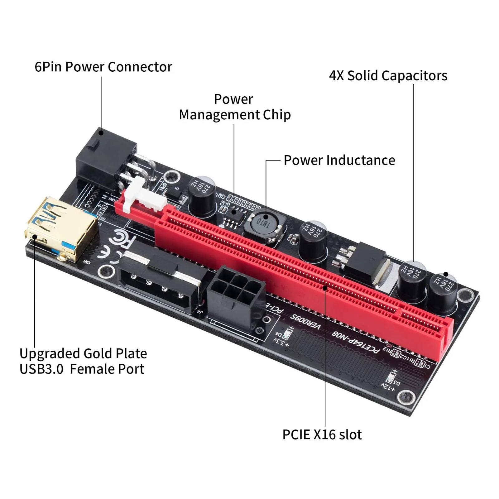 Райзер для майнинга Ver009s USB 3,0 PCI-E, 6 шт.