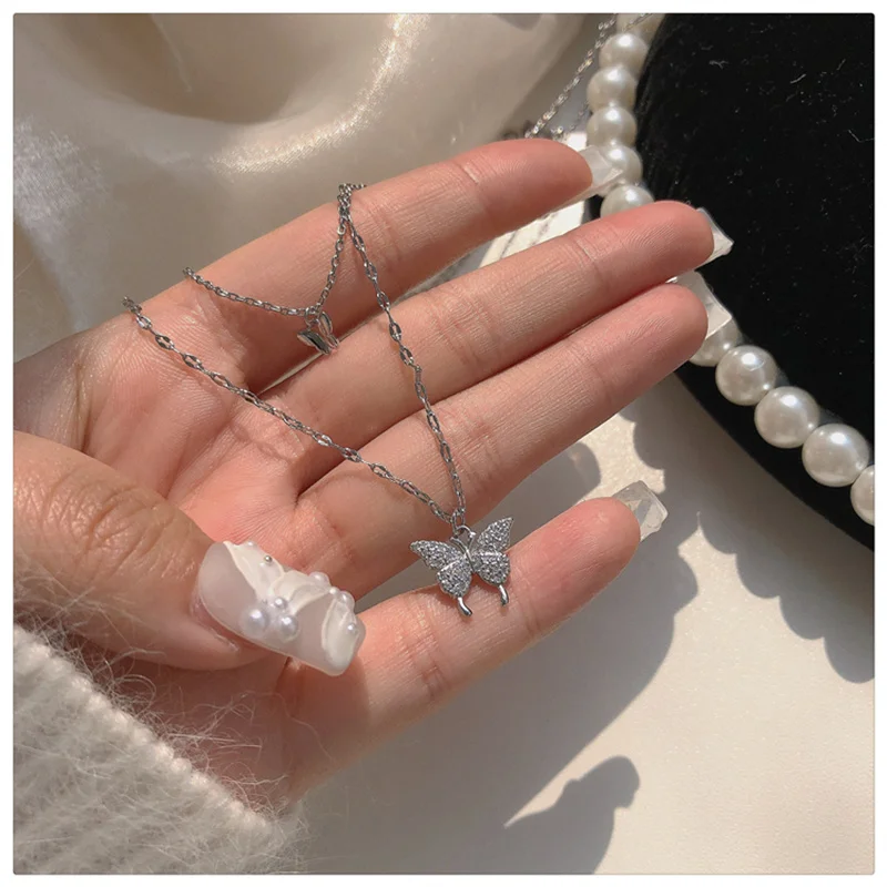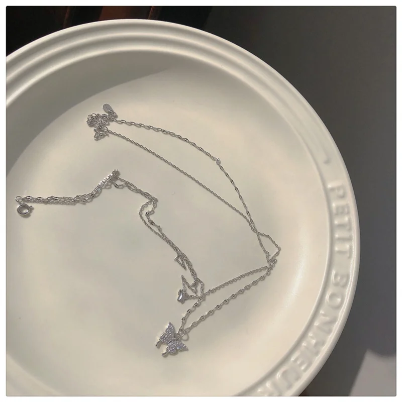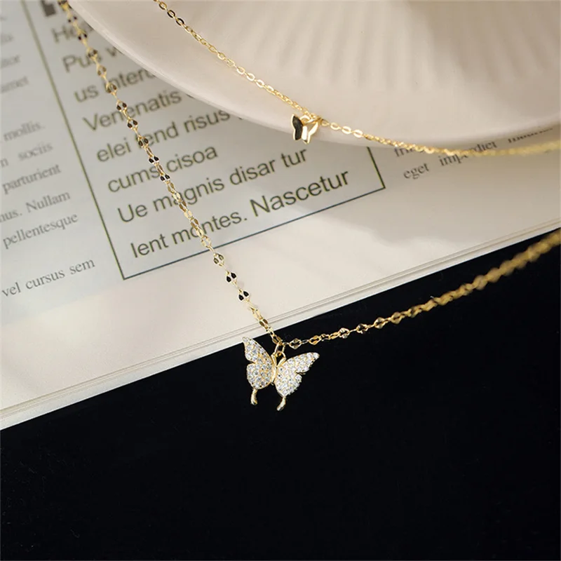Блестящее ожерелье ZZYY в виде бабочки, женское Двухслойное ожерель...