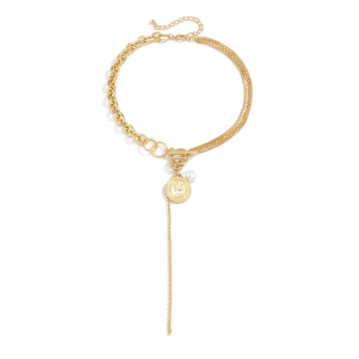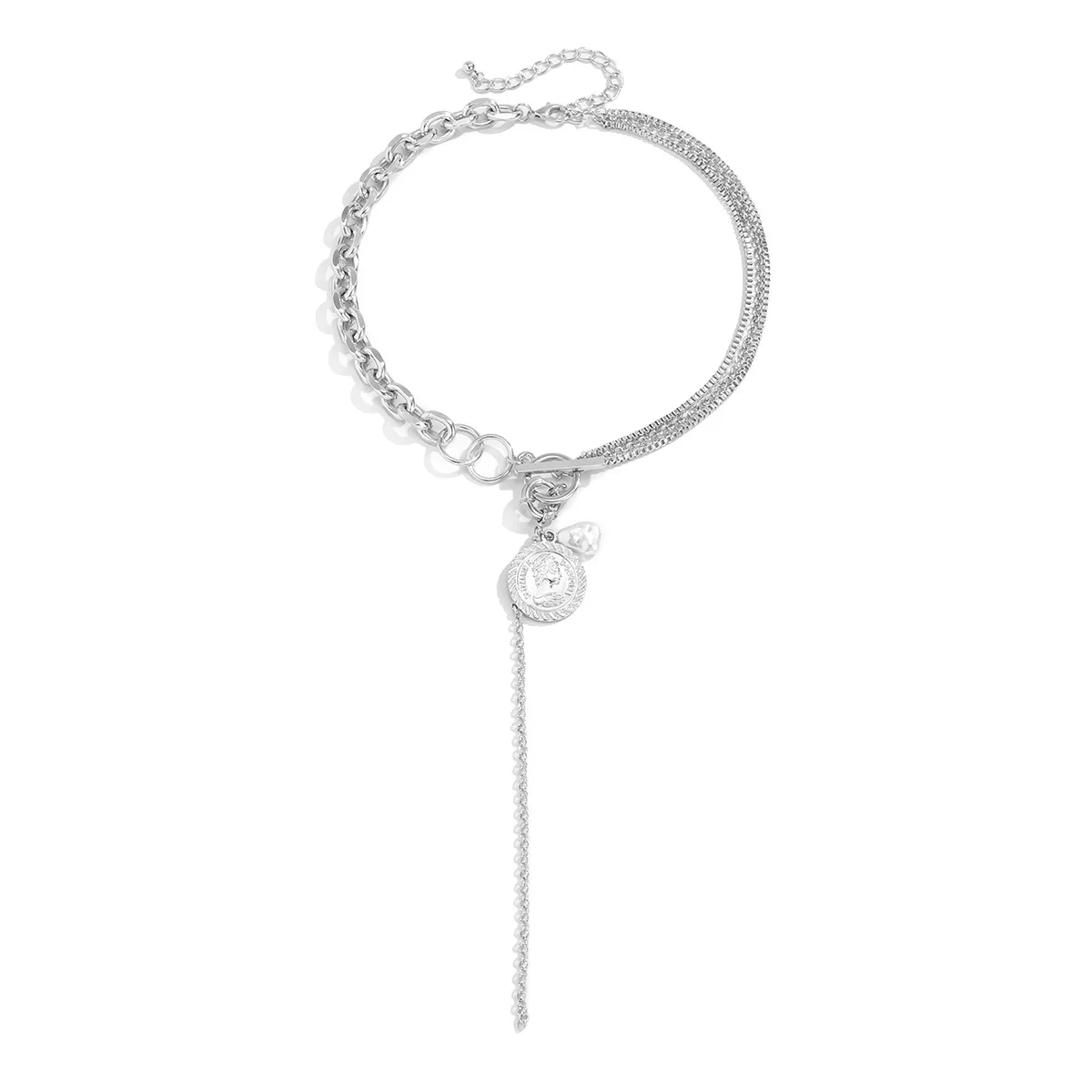 Модные металлические геометрические ожерелья, Женские многослойные ожерелья в стиле панк, портрет, костюм, жемчужина, алюминиевая цепочка с подвеской, ювелирные изделия для девочек