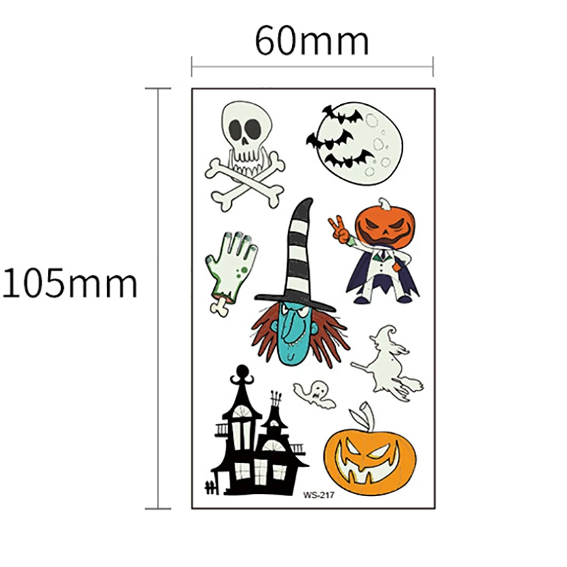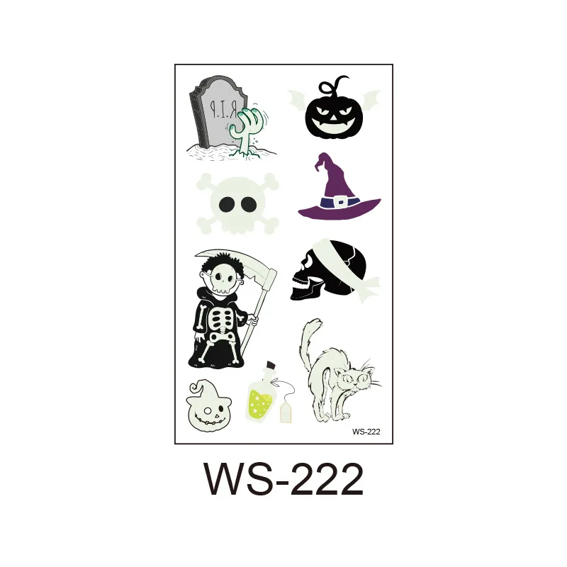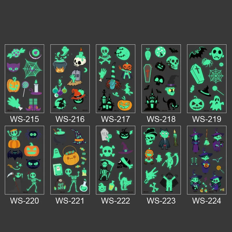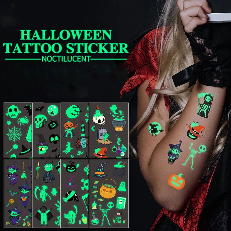 5 листов, Детские Светящиеся Татуировки, для Хэллоуина