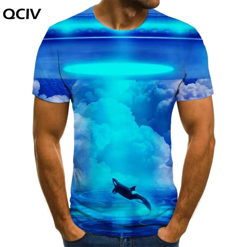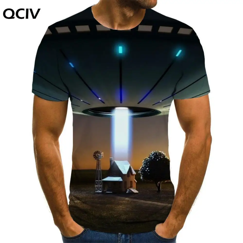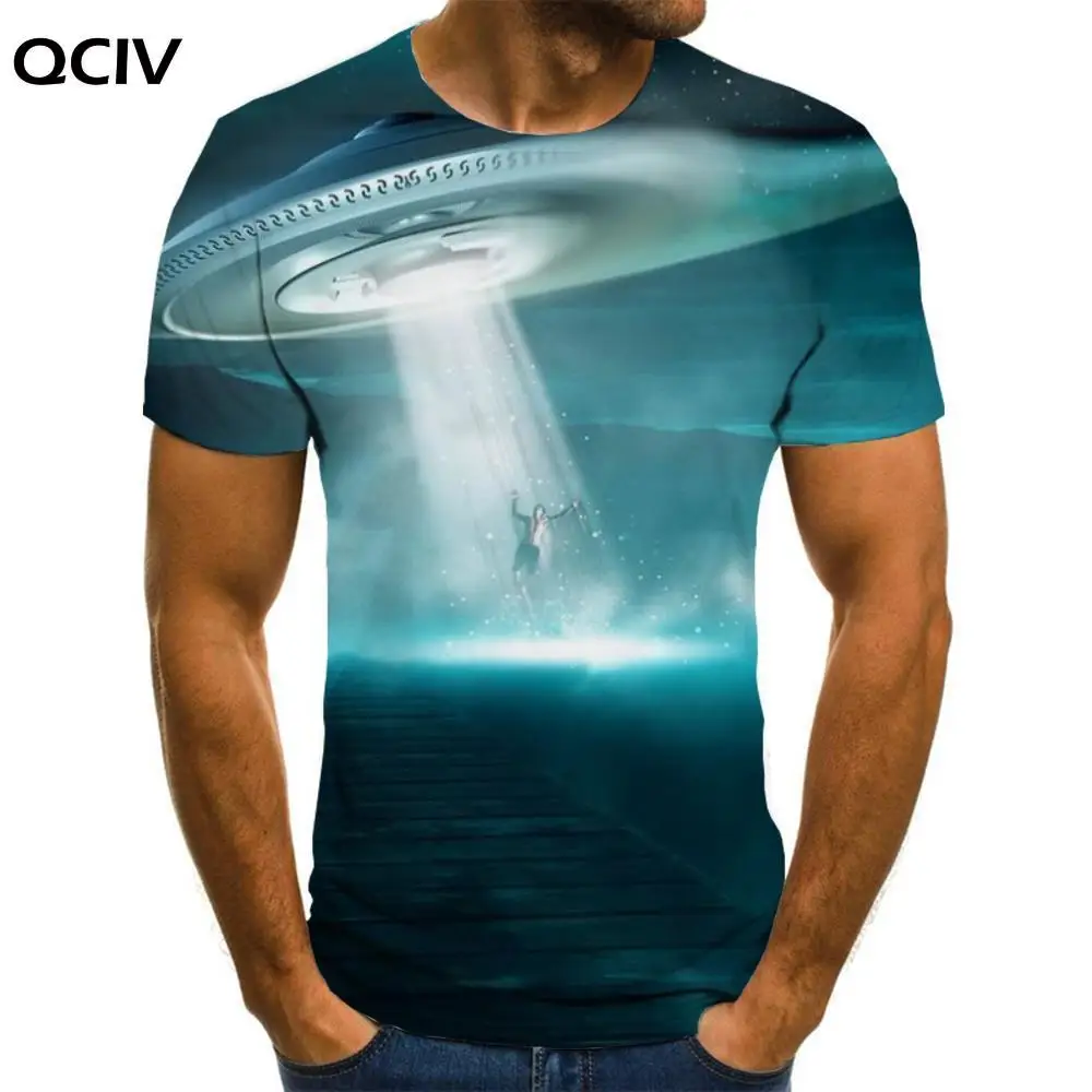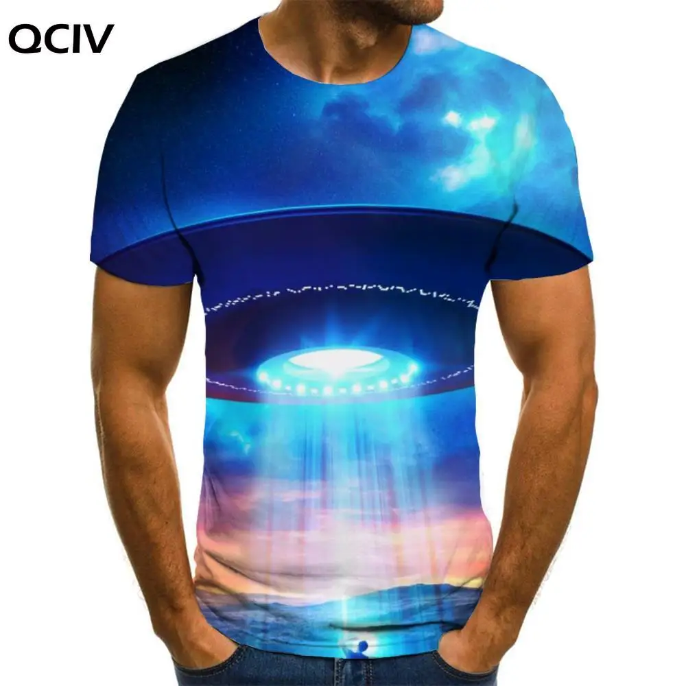 QCIV брендовая футболка НЛО Мужская футболка с принтом галактики смешные футболки Харадзюку футболки 3d мужская одежда футболки новые мужские топы