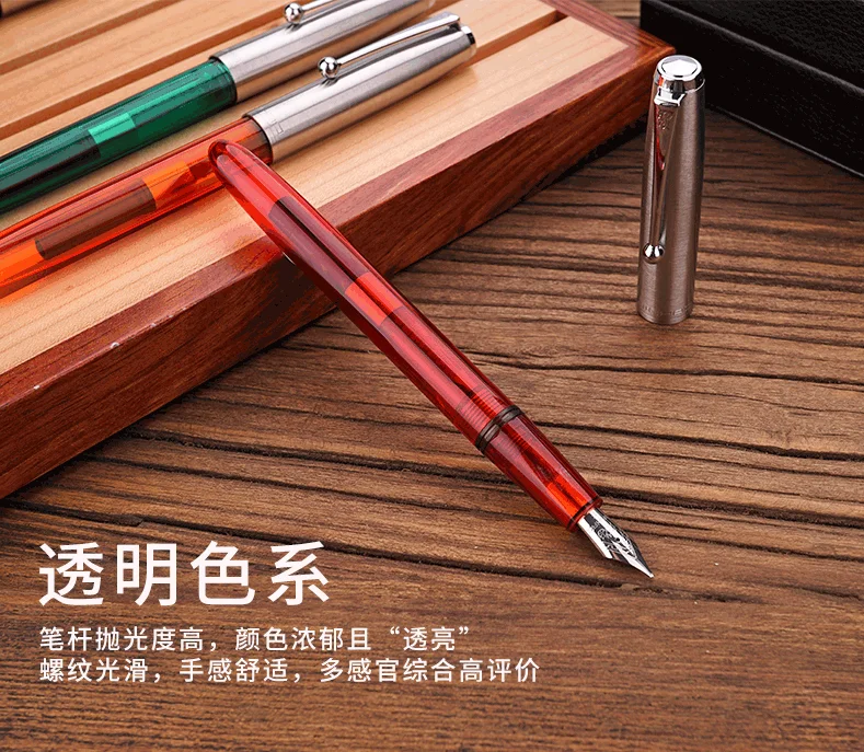 Перьевая ручка JINHAO, 51A, в стиле ретро, со стальным металлическим колпачком, прозрачный бочонок, тонкий наконечник, для офиса, финансов, школы
