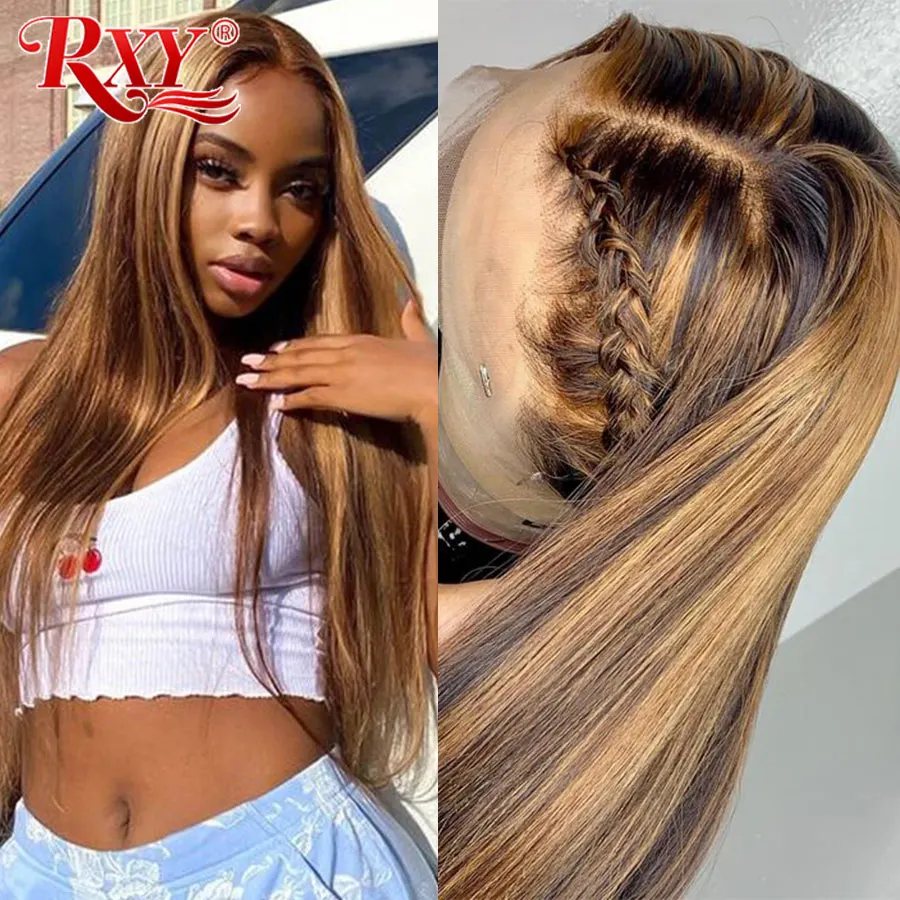 Парик RXY 180, плотность 427, прямые натуральные волосы, Т-образный, медовый блонд, парики для женщин