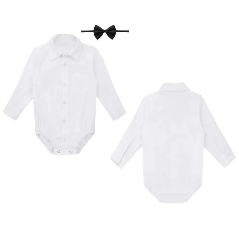 Рубашка-комбинезон для маленьких мальчиков, боди, повседневная одежда, короткийдлинный рукав, лацканы, Официальный джентльменский комбинезон с черным бантом