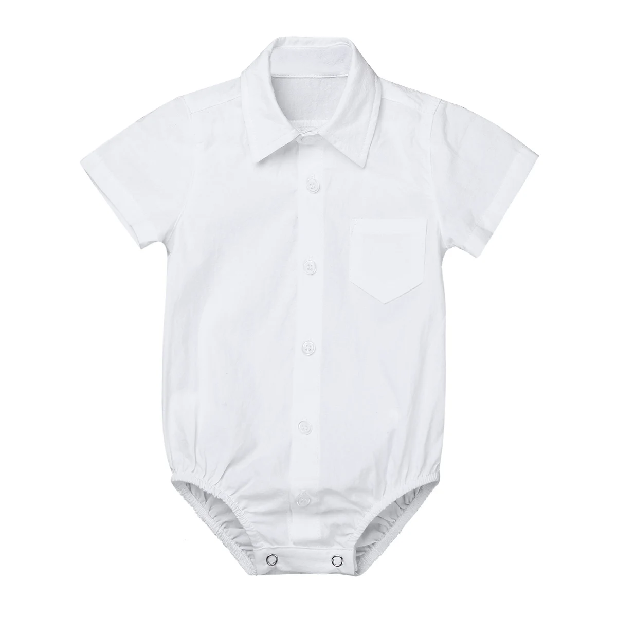 Особенности: Комбинезон изготовлен из полиэстера и хлопка, ручная стирка. Таблица размеров означает возраст для маленьких мальчиков, но они предназначены только для общего руководства. Короткие/длинные рукава, дизайн с лацканами, один нагрудный карман, спереди с пуговицами для легкой одевания. Эластичные отверстия для ног. Защелкивающиеся застежки внизу для легкой смены подгузников. Регулируемый черный галстук-бабочка с застежкой. Подходит для дня рождения, вечерние, фотографии, торжеств, свадьбы, праздника, повседневной носки и т. д.