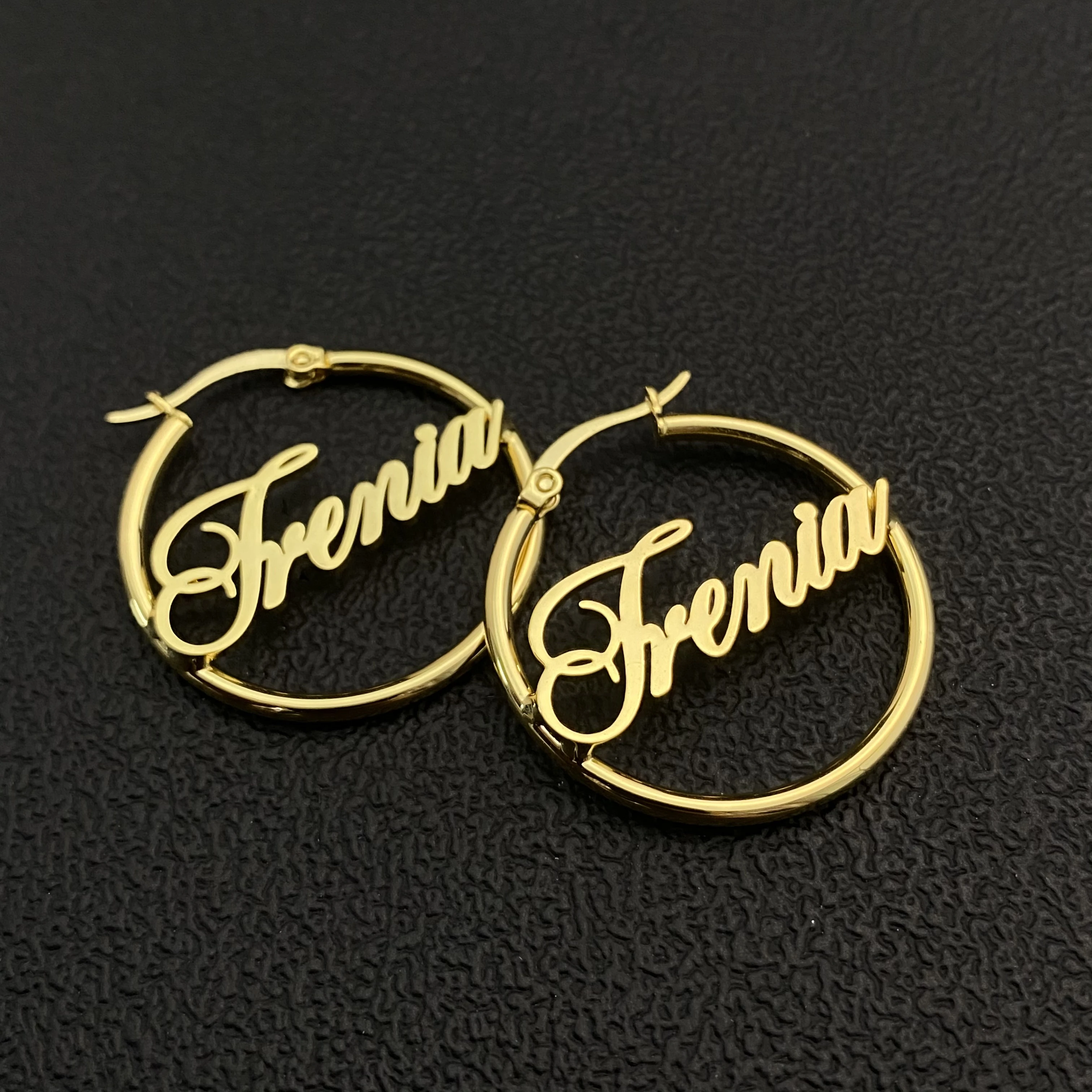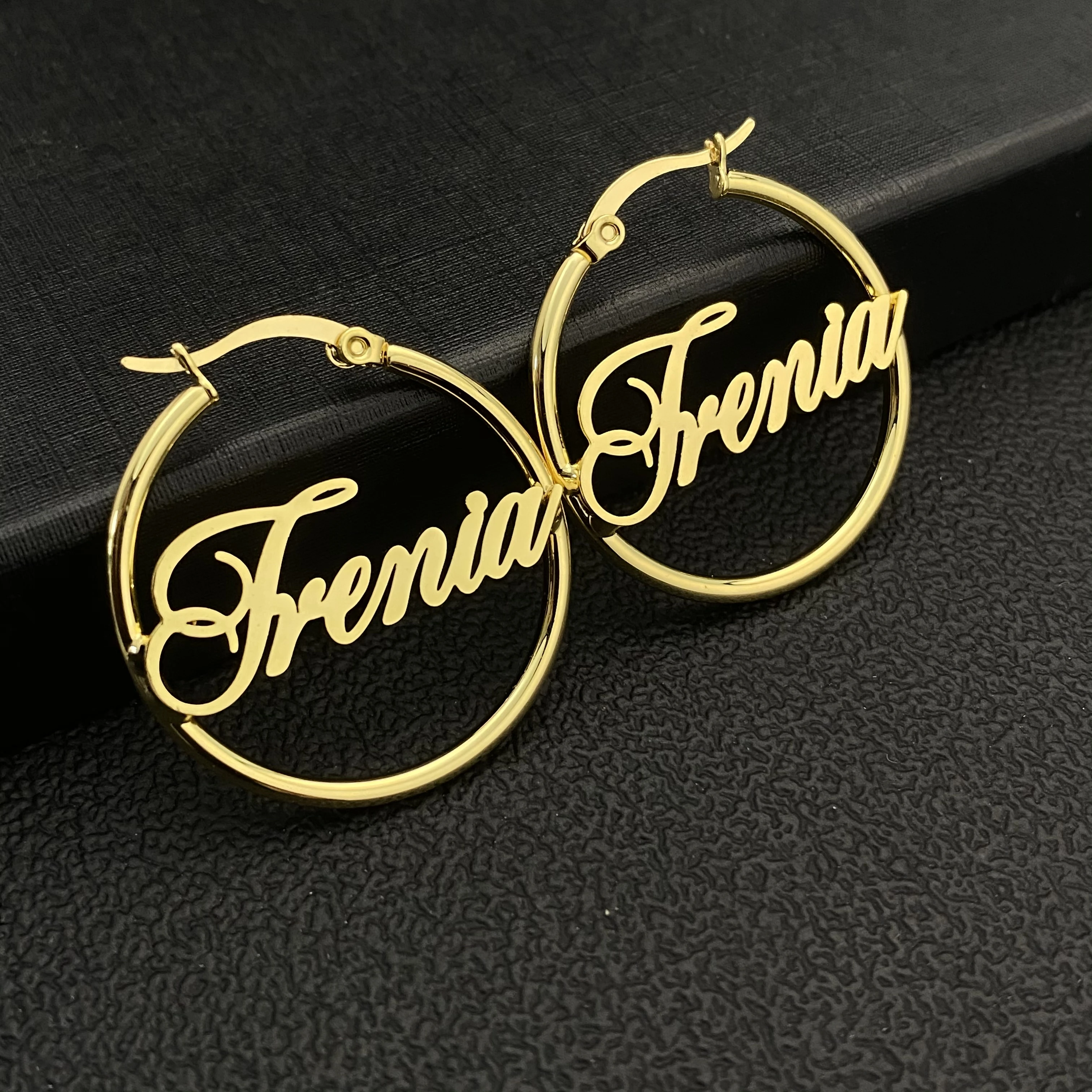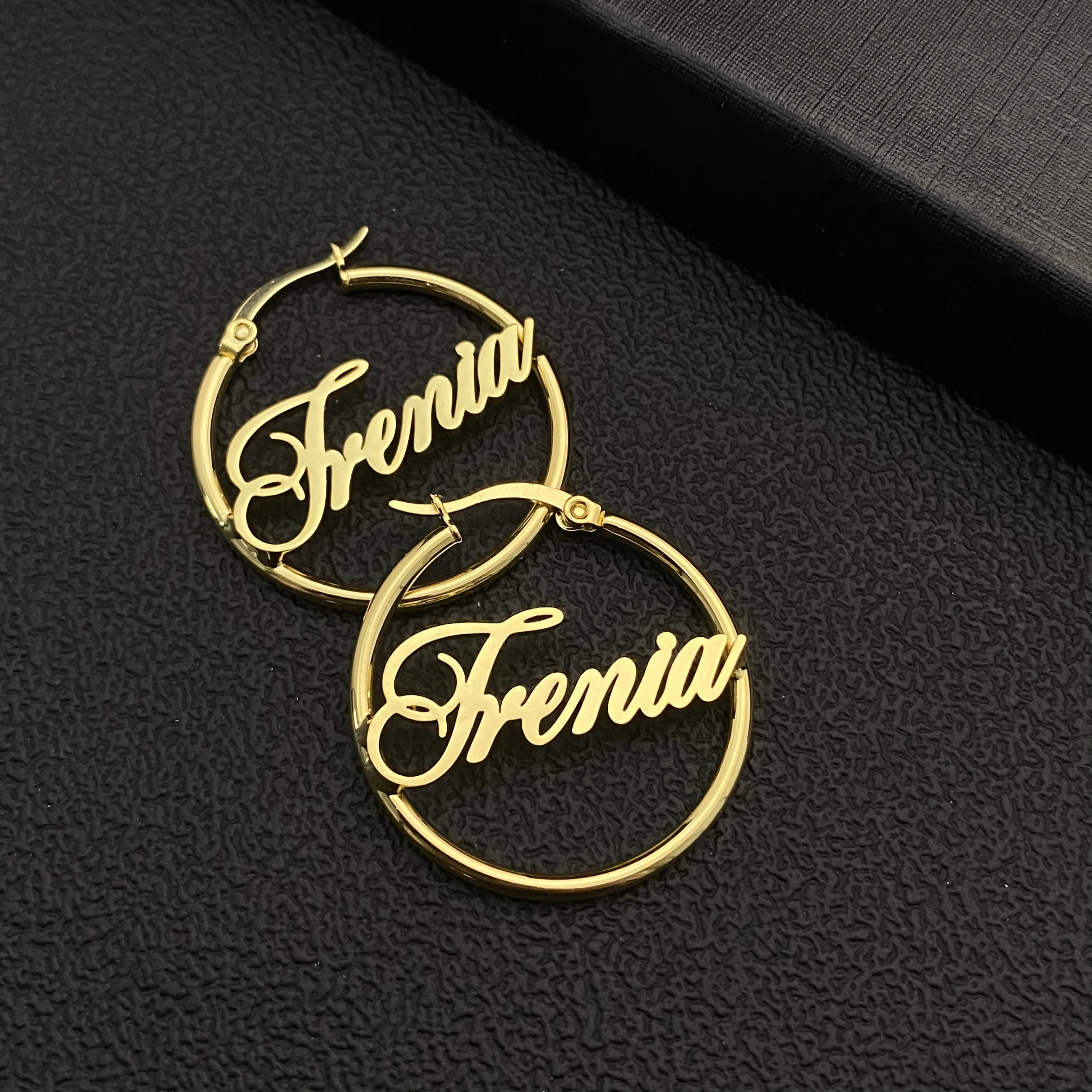 серьги сережки сережки необычные серьги 2021 тренд серьги кольца Индивидуальные именные серьги для детей из нержавеющей стали, большие женские индивидуальные модные ювелирные изделия, подарок для маленьких девочек
