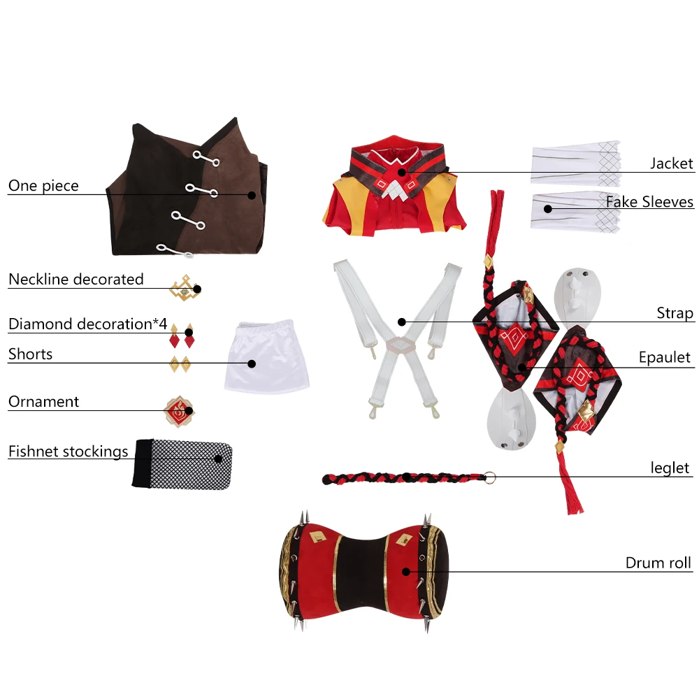 Посылка включает в себя полный комплект: Один предмет, куртка, шорты, Поддельные рукава, эполет, легинсы, украшенные вырезом, украшенные стразами * 4, чулки * 2, орнамент