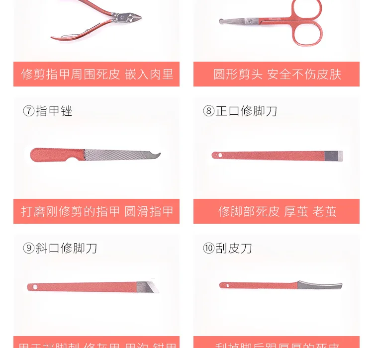 Характеристика:Этот набор содержит основные инструменты, необходимые для нормального ухода, маникюра или педикюра.