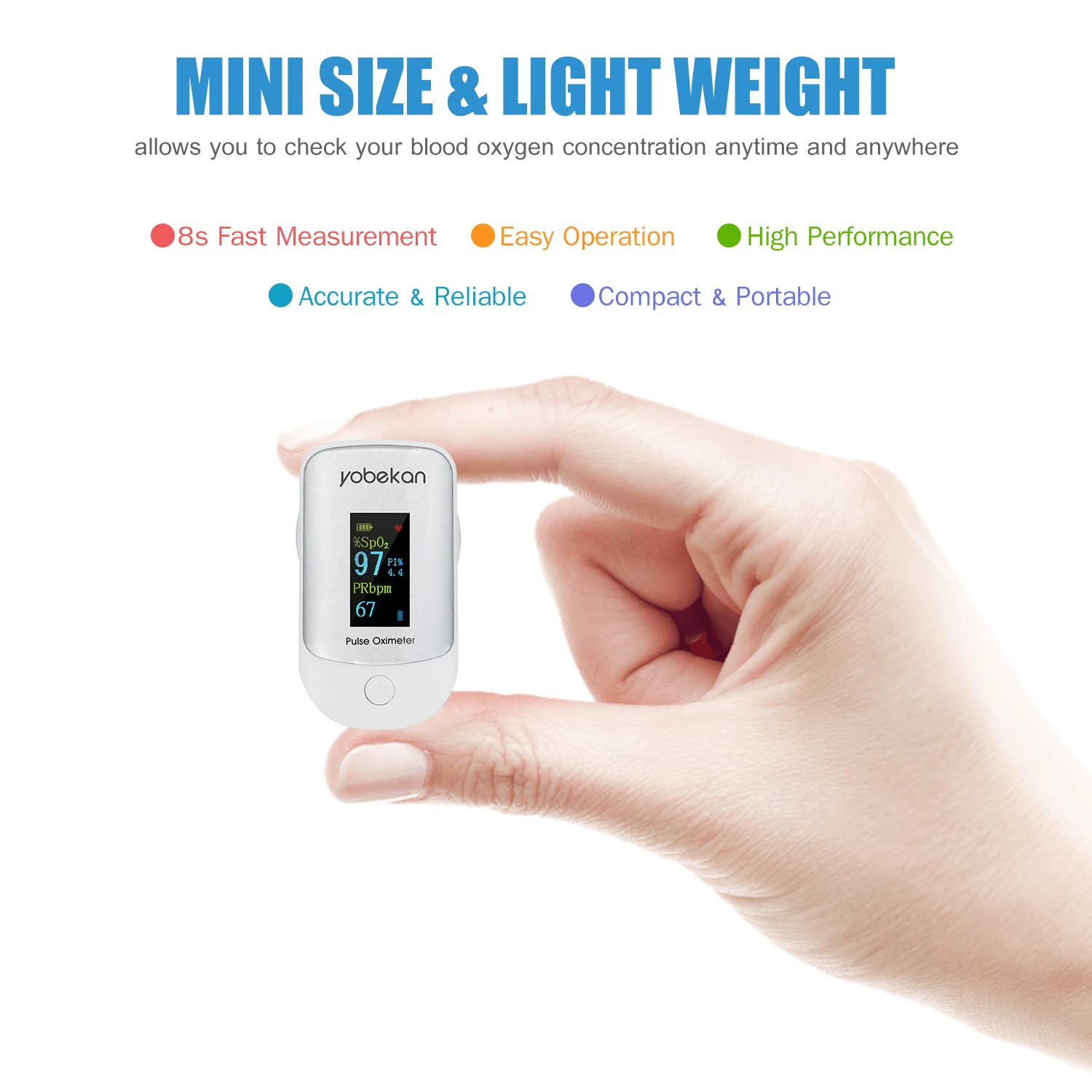 1. Пульсоксиметр на палецНебольшой по объему, светильник по весу и удобный для переноски, оксиметр для пальцев удобен для контроля частоты пульса, кислорода в крови и индекса запотевания. Основные особенности работы одной кнопкой, быстрое считывание 8s, автоматическое выключение 8s, высокая точность со стабильной производительностью, четкий ЖК-дисплей для прямого отображения PR, SpO2 и PI, И он имеет 4 угла отображения для переключения.Особенности:Многофункциональность и практичность: оксиметр для измерения пульса (PR), насыщения крови кислородом (SpO2) и индекса перфузии (PI), очень подходит для использования в обществе, школе, районе плато, кислородный бар, фитнес-клуб, семья и другие профессиональные заведения и т. д.ЖК-экран TFT высокой четкости: удобный цветной экран с белыми и желтыми шрифтами для отображения числового значения пульса и пульса (PR), насыщения крови кислородом (SpO2) И индекс перфузии крови (PI).Точность и надежность: используется с усовершенствованным микросхемой MCU для быстрого измерения в течение 8 секунд и гарантирует точность измерения.Простое управление: легко управлять одной кнопкой, просто закрепите оксиметр на пальце и нажмите кнопку для измерения, подождите 8 секунд, результат будет четко отображаться на HD-экране.Вращение дисплея: Нажмите кнопку питания, чтобы изменить направление дисплея, 4 регулируемых угла ЖК-дисплея.Энергосберегающее Автоматическое отключение: Автоматическое отключение через 8 секунд, если не обнаружит вставку пальца. Низкое энергопотребление и индикатор заряда батареи, напоминающий о состоянии батареи.Компактный и портативный: Благодаря компактному карманному размеру легкий оксиметр позволяет проверять концентрацию кислорода в крови в любое время и в любом месте.Характеристики:Цвет: черный/белый (необязательно)Материал: АБСРежим отображения: двухцветный дисплей TFT-LCDНасыщение крови кислородом (SpO2):Диапазон измерения: 70 ~ 99%Точность измерения: в диапазоне 70 ~ 99% ± 2, ≤ 70%, нет определения точностиРазрешение: насыщение крови кислородом ± 1%Частота пульса (PR):Диапазон измерения: 30 ~ 240 ударов в минутуТочность измерения: ± 3BPM или ± 1% от измеренного значения (Возьмите большее значение)Потребляемая мощность: менее 30 мААвтоматическое отключение: 8 секундТемпература использования: 5 ~ 40 ℃Температура хранения: -10 ~ 40 ℃Источник питания: 2 батарейки AAA 1,5 В (не входят в комплект)Размер изделия: 58*36*33 мм/2,28*1,42 * дюймаВес изделия: 28 г/1,01 унцииВес посылка: 37 г/1,32 унцииПосылка: 7*4,8*3,6 см/2,76*1,89 * 1.42inУпаковочный лист:1 * оксиметр1 * Руководство (на английском языке)