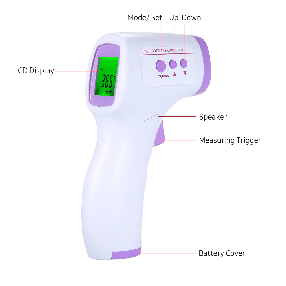 3. ТермометрОсобенности:Измерение температуры человеческого тела: Этот инфракрасный термометр для лба подходит для всех возрастов, младенцев, взрослых и пожилых людей, что обеспечивает самый простой и практичный способ измерения температуры.Бесконтактное измерение: портативный цифровой инфракрасный термометр, термометр. Избегайте прикосновения к коже, удобно измеряйте температуру и не рискуйте перекрестной инфекции.Термометр для мгновенного считывания: нажмите кнопку измерения, и результат погаснет через 1 секунду. Высокая эффективность, не нужно ждать, экономит ваше время.Дисплей высокой четкости: термометр оснащен ЖК-большим жидкокристаллическим дисплеем, высокой яркостью с подсветкой, четким и мягким дисплеем, что делает чтение четким.Сигнал высокой температуры: горит КРАСНАЯ подсветка дисплея, отображается слово «HI» и сигнал тревоги.Широкое применение: не только поддерживает лоб людей, но и случайно определяет температуру поверхности объекта. Широко используется в возобновлении производства, офисном здании, торговом центре или дома.Характеристики:Название продукта: инфракрасный термометрЦвет: белый, черный (по желанию)Режим измерения: БесконтактныйМесто измерения: лобРасстояние измерения: 1-5 смДиапазон измерения тела: 32 ℃-42,9 ℃ (89,6 ℉-109,22 ℉)Точность измерения: 32,0 ℃-34,9 ℃ ± 0,3 ℃; 35,0 ℃-41,9 ℃ ± 0,2 ℃; 42,0 ℃-42,9 ℃ ± 0,3 ℃Единица измерения: ℃/℉Подсветка: зеленая: 32-37,1 ℃, желтая: 37,2-37,9 ℃, красная: 38-42,9 ℃Источник питания: 3 В постоянного тока 2 * батарейки типа "ААА" (не входит в комплект)Размер изделия: 14,6*4,1*3,8 смРазмер цветной коробки: 15*4,5*4,2 смВес посылка: 84 гУпаковочный лист:1 * Инфракрасный термометр1 * Руководство пользователя на английском языке