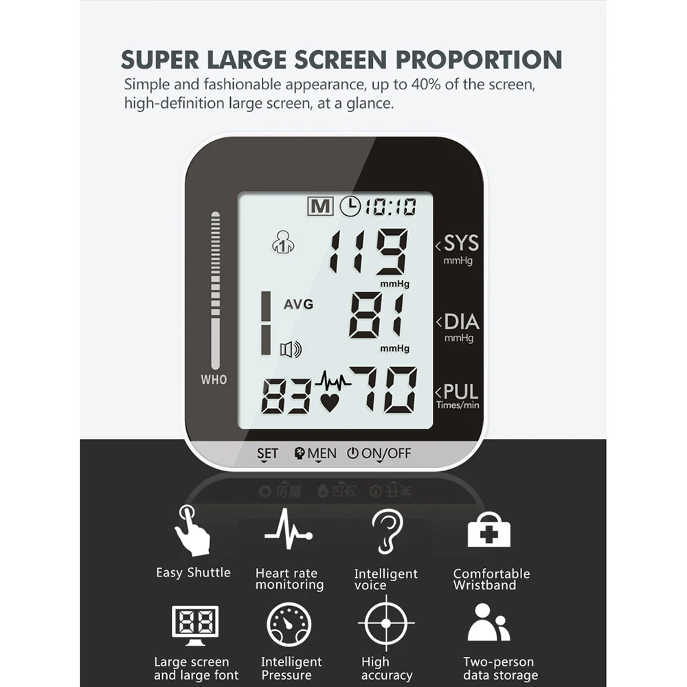 2. Монитор артериального давленияЭтот монитор артериального давления на плечах быстро проверяет состояние здоровья. ЖК-дисплей, удобный для пожилых людей. Компактный размер, позволяет измерить в любом месте и в любое время.Особенности:Артериальный/осциллометрический метод измерения артериального давления, точный и быстрый.Интеллектуальное давление, отсутствие дискомфорта при использовании.Простота в эксплуатации, просто нажмите кнопку переключателя для проверкиДля двух групп пользователей каждый пользователь может записывать до 99 измерений.Манжета большого размера подходит практически всем людям независимо от того, стройный или прочный.Характеристики:Модель: B01Цвет: белый, черный (по желанию)Единица измерения: кПа/мм рт. Ст.Метод измерения: arm/осциллометрический методПользователь: 2 пользователяХранение данных: 99 групп на человекаДиапазон измерения:Артериальное давление: 0-300 мм рт. Ст. (0-40, 0 кПа)Частота пульса: 40-200 раз в минутуТочность артериального давления: ± 0,4 кПа (± 3 мм рт. Ст.)Источник питания: USB/ 2 батарейки AAA (не входят в комплект)Посылка: 155*120*80 мм/6,1*4,72 * 3.15inВес посылка: 390 г/13,76 унцииУпаковочный лист:1 * Монитор артериального давления1 * Адаптер питания1 * Руководство