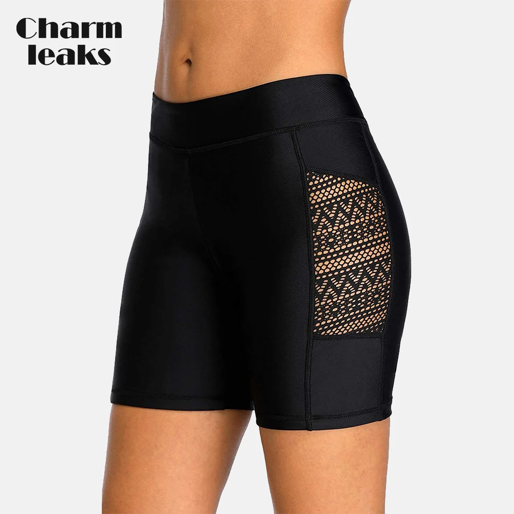 Charmleaks женские шорты для плавания с высокой талией, Капри для плавания, танкини, женские пляжные шорты