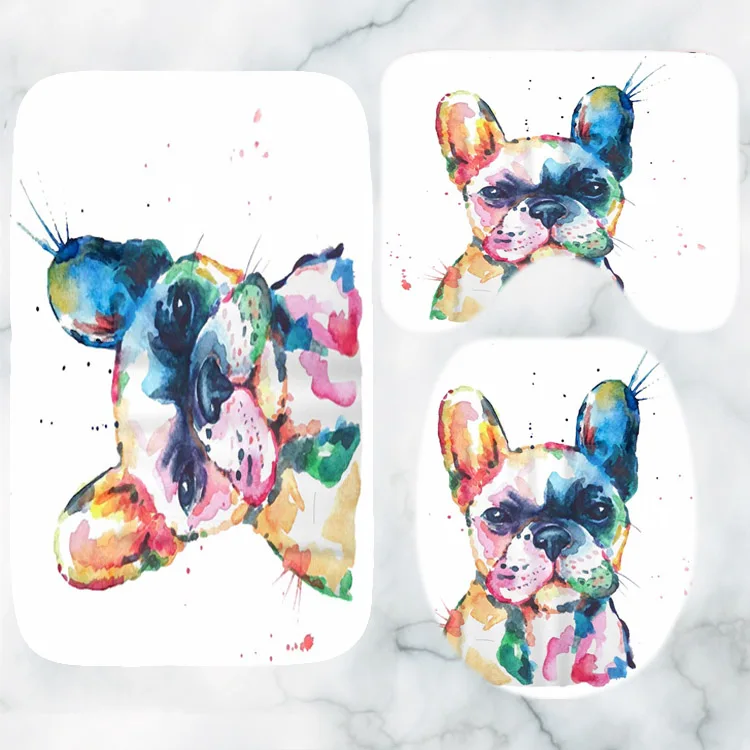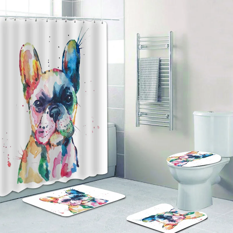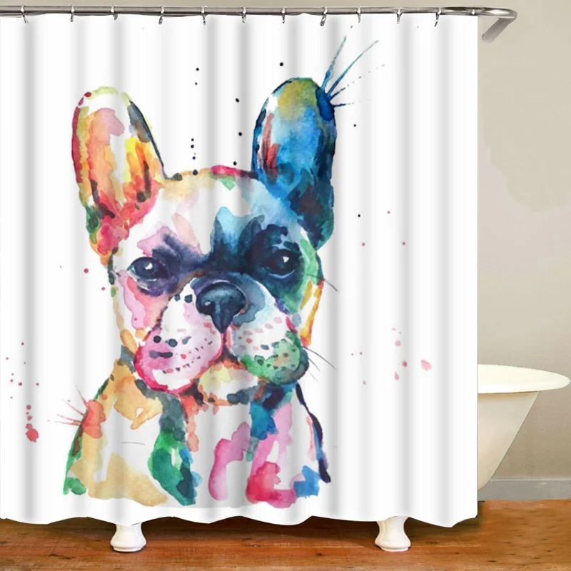 Занавеска для душа с милым акварельным рисунком, французский бульдо...