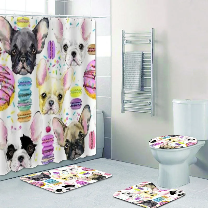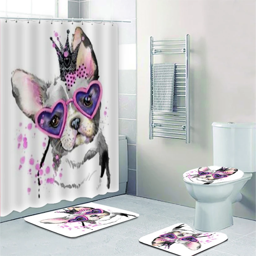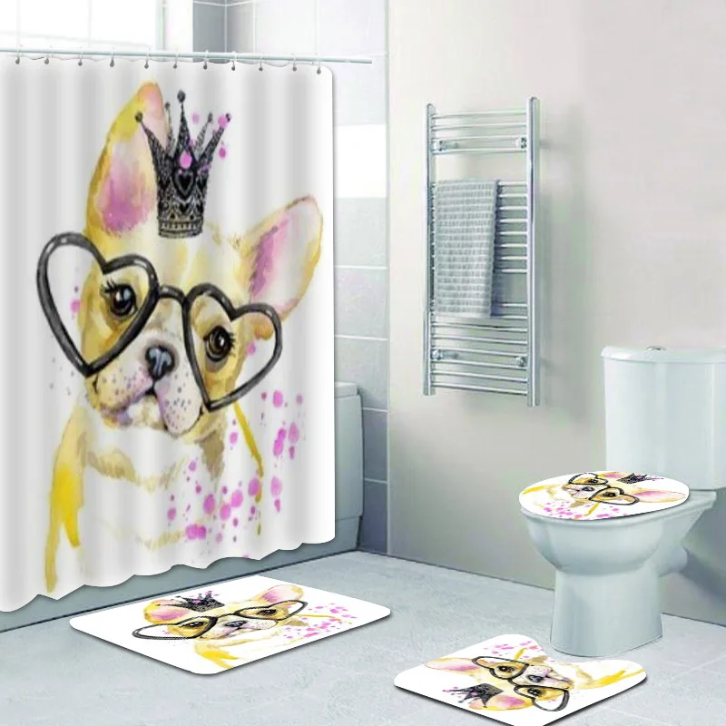 Милая Акварельная картина французского бульдога с очками Корона душевая занавеска и ковер для детей мультяшный щенок Фотоштора