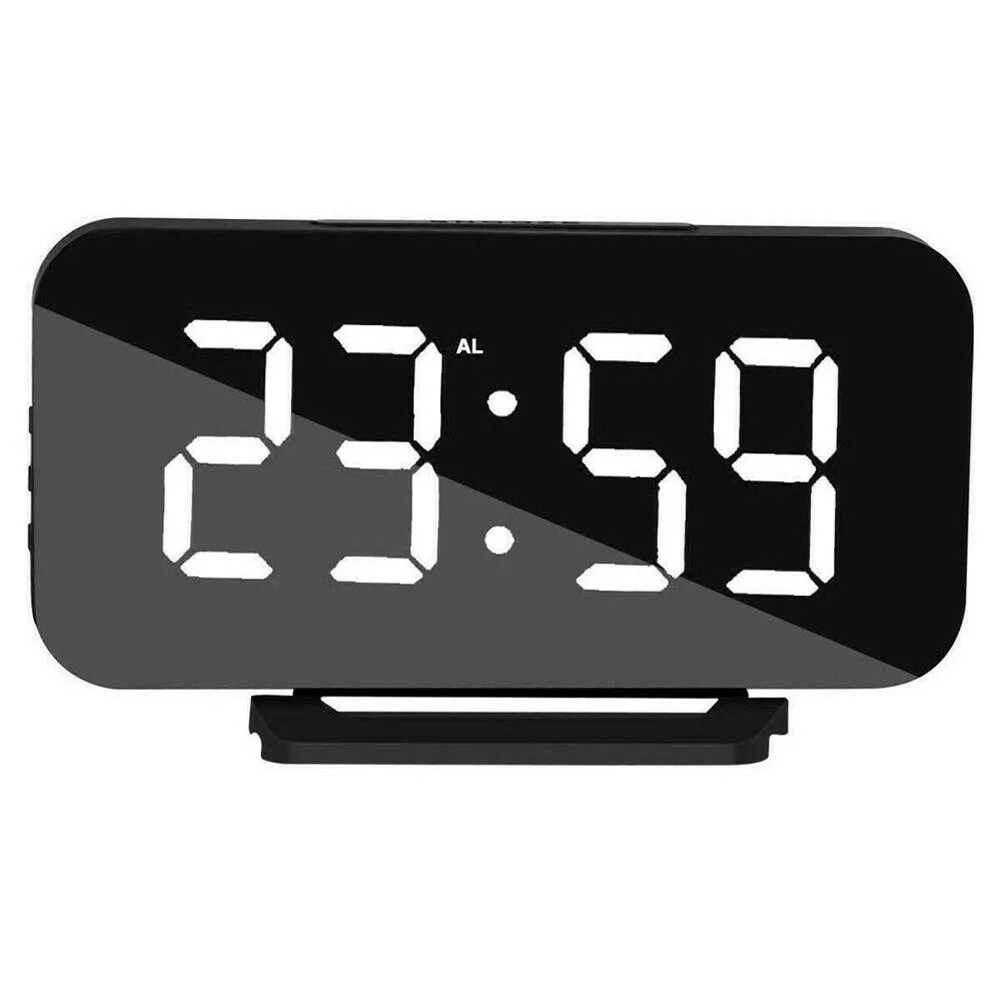 Зеркальный светодиодный цифровой будильник 6,57 дюймов, светильник, электронные цифровые настольные часы, цифровые часы, термометр, USB зарядка