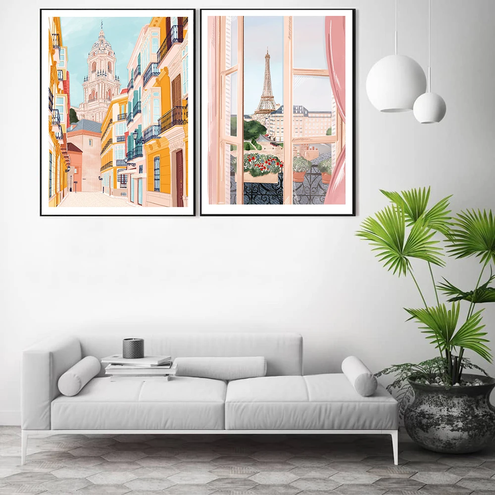 Аниме постер путешествия по городу Париж Эйфелева башня Испания Мал...