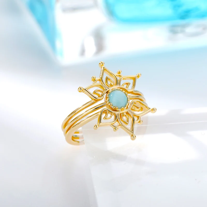 Изысканное обручальное кольцо из нержавеющей стали с голубым опалом и цветком лотоса