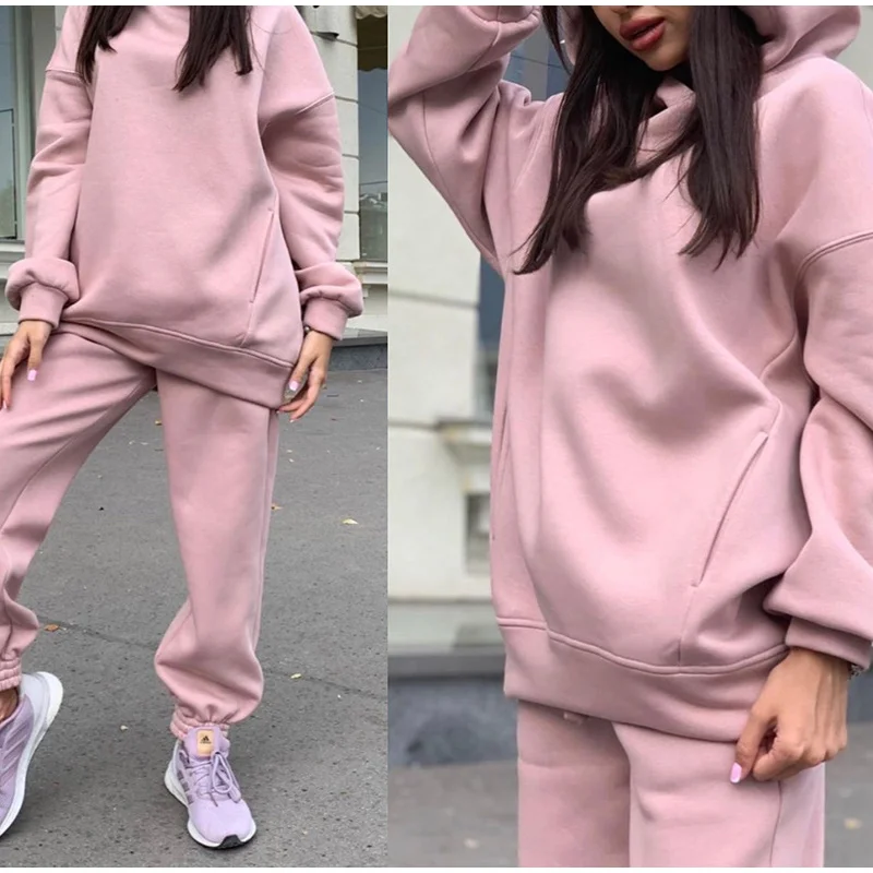 Комплект из 2 предметов, толстовка, свитшот, спортивный костюм, женский комплект из топа с длинным рукавом и брюк, осенне-зимние толстовки, женская одежда, Moletom Feminino