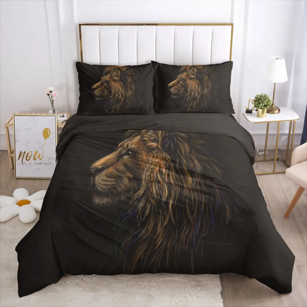 Набор постельных принадлежностей с изображением Льва 3D одеяло с изображением животных набор чехлов черное постельное белье кровать Подушка король королева супер король двойной полный размер