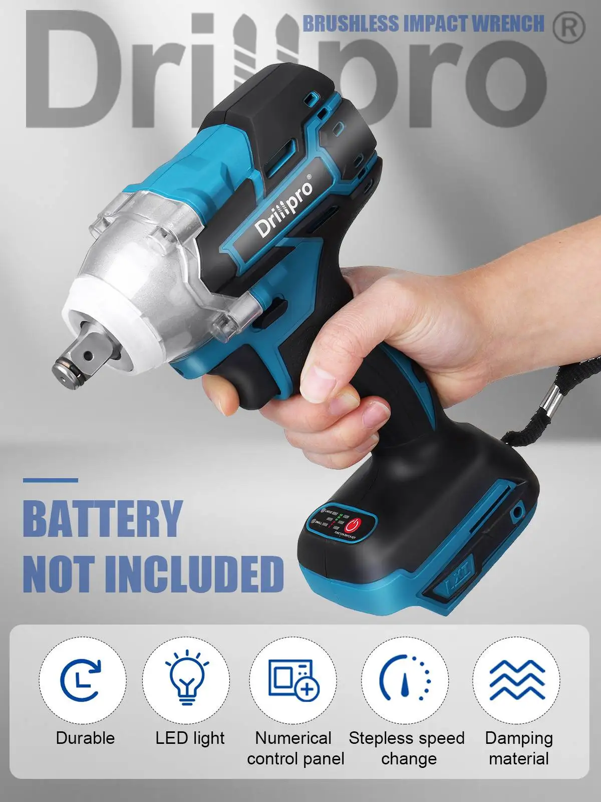 Гайковерт Drillpro ударный беспроводной, 350 Н м, 12 дюйма, с бесщеточным Мотором, для аккумулятора Makita 18 в (только инструмент)