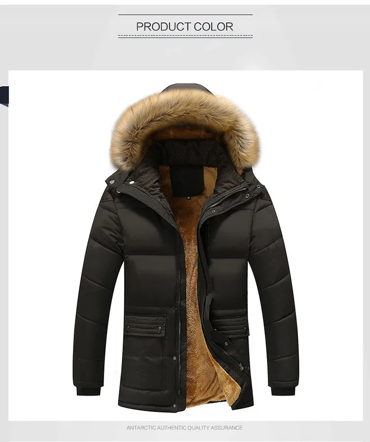 Мужская зимняя утепленная куртка с меховым воротником и капюшоном, Мужская ветрозащитная куртка, мужские парки, повседневное пальто, пальто со съемной шапкой