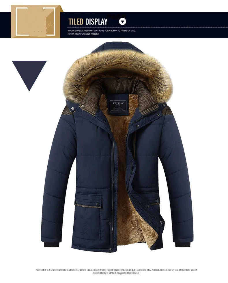 Мужская парка с меховым воротником, зимняя теплая Толстая хлопковая...