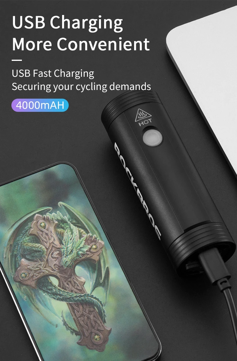 ROCKBROS 2021 Новый велосипедный фонарь, передсветильник светодиодная вспышка, непромокаемая велосипедная фара, 4000 мАч, USB, перезаряжаемая лампа для горного и дорожного велосипеда