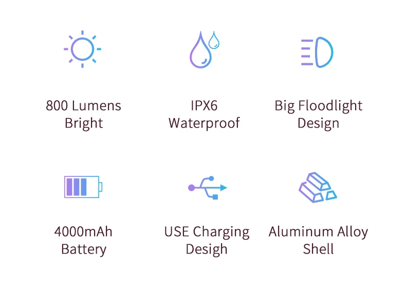 Бренд: ROCKBROSМодель: R1-400/R1800Материал: алюминиевый сплавСтиль: фараРежим: высосветильник/низсветильник/вспышкаЦвет: черныйВес: около 150 г (только светильникРазмер: около 98*32 ммВодонепроницаемость: IPX6Люмен: 400 / 800 люменДиапазон: 200 мАккумулятор: 2000 мАч
