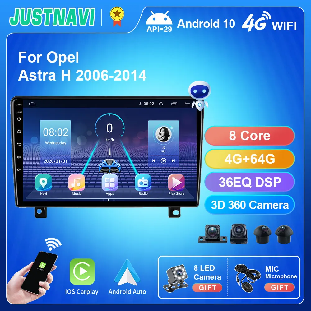 Автомобильный радиоприемник JUSTNAVI для Opel Astra H 2006 - 2014 Android 10,0, мультимедийный плеер, Авторадио, навигация Carplay, GPS, автомобильное стерео DSP