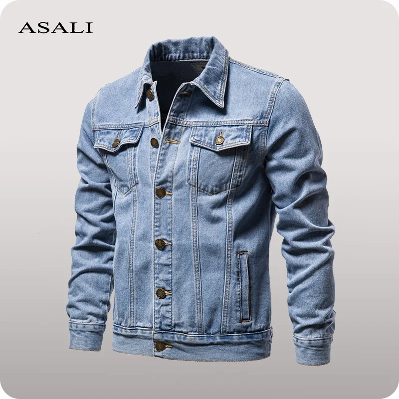 Куртка мужская джинсовая однотонная, Повседневная Уличная одежда из...