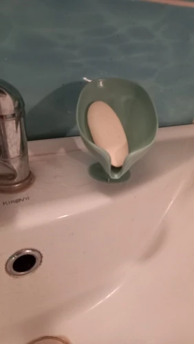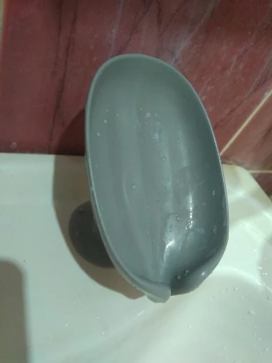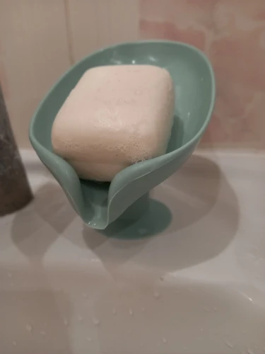 Красивая мыльница и очень удобная. Крепится к раковине присоской и мыло благодаря ей мыло не превращается в кашу