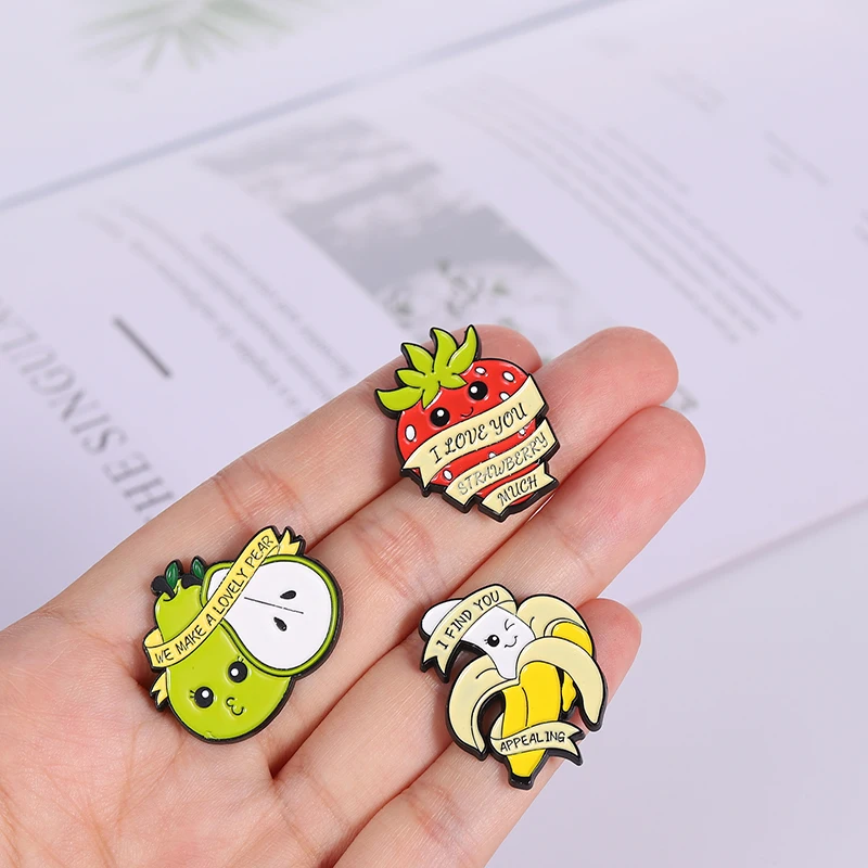 Эмалированная булавка в виде розыгрыша, броши в виде фруктов для детей, авокадо, клубника, значок банан, рюкзак, металлические украшения, подарок, оптовая продажа