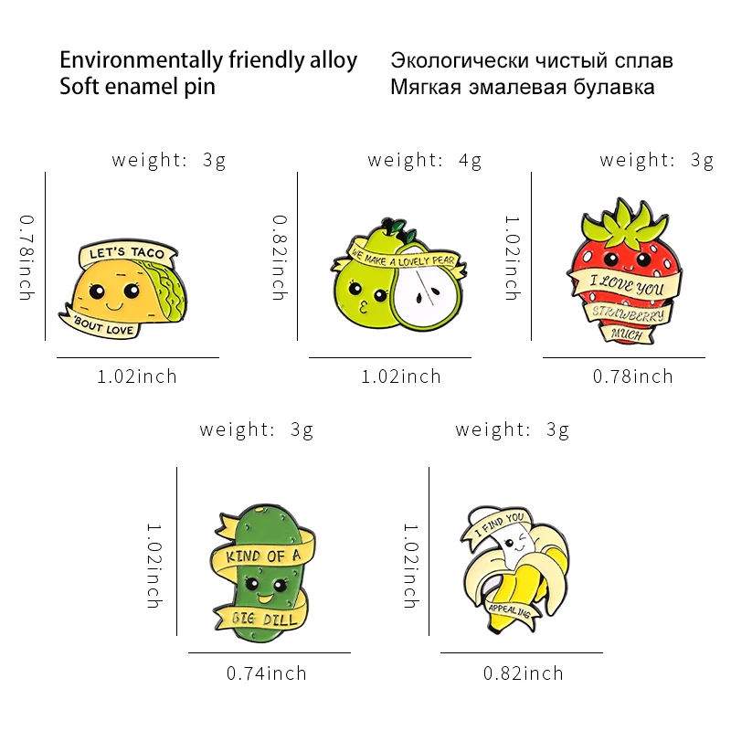 Значок с отчеством еды эмалированные булавки клубника груша Тако бу...