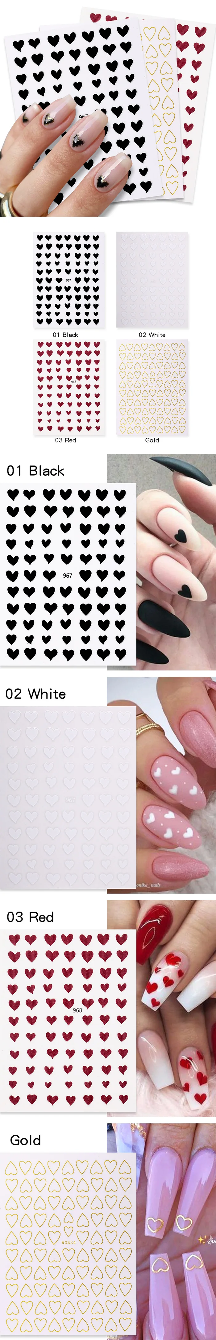 Наклейки на ногти в виде сердца на День Св. Валентина, черные и бел...