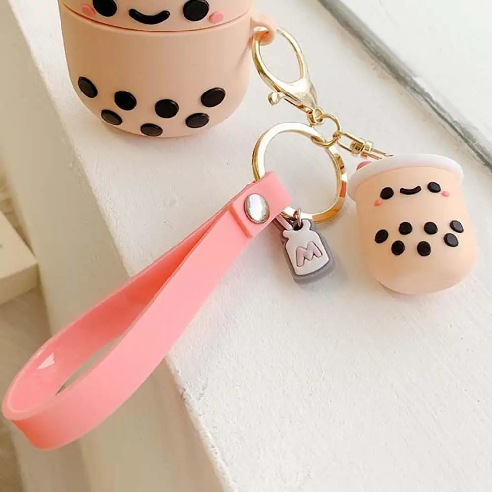 Силиконовый жемчужный милый брелок для ключей с молочным чаем, женс...