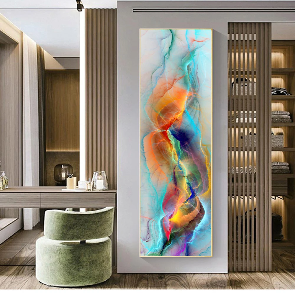Большой размер молния синий желтый абстрактный облако холст живопись пейзаж плакаты принты для гостиной настенные украшения