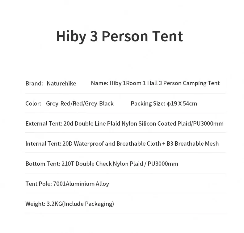 Hiby 3 палатки вес: 20D с нейлоновым покрытием 3,2 кг (включая упаковку)