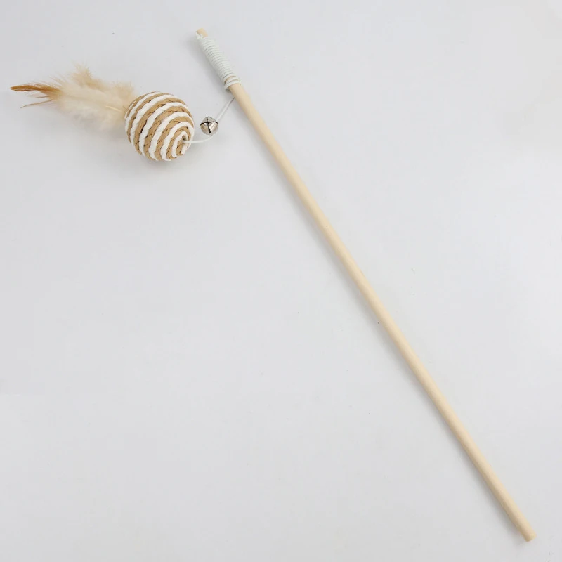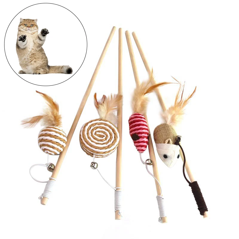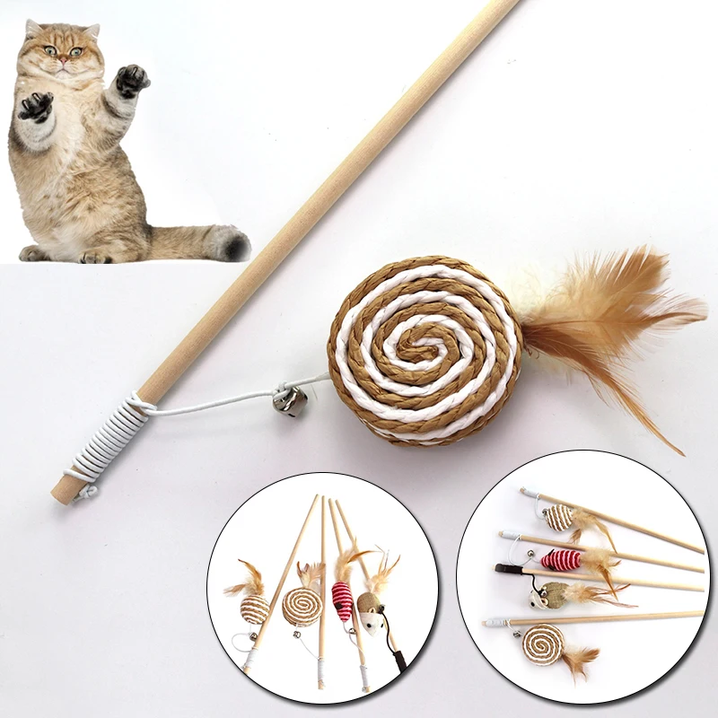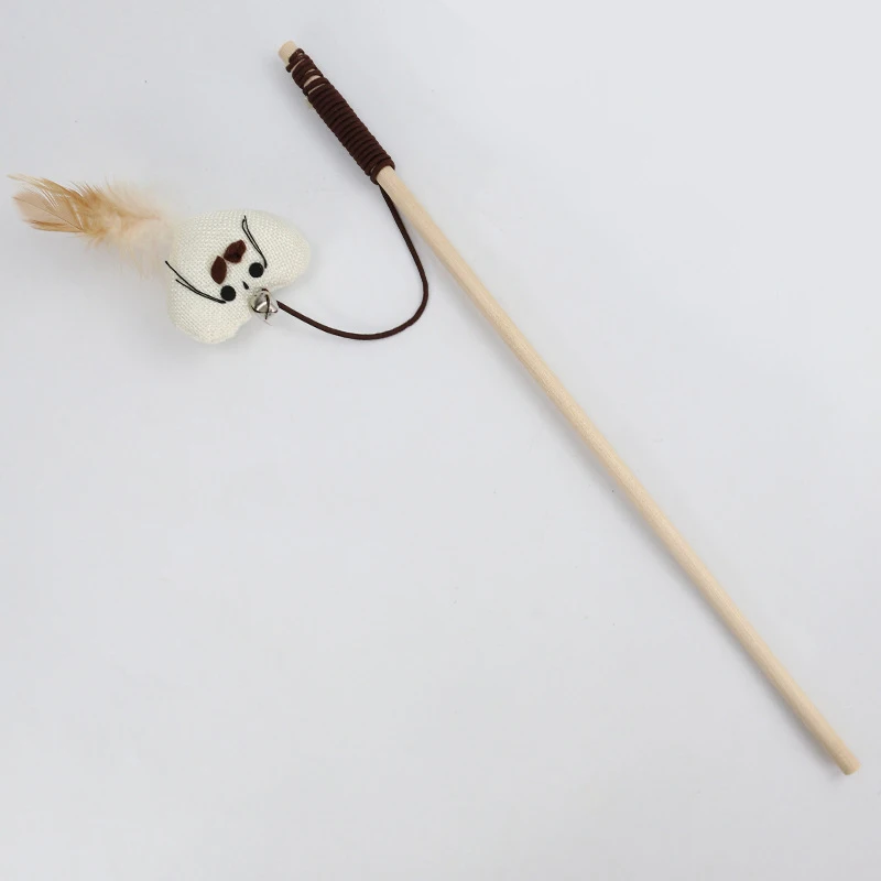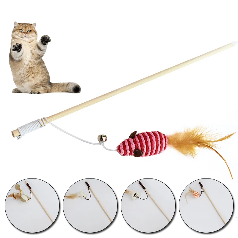 Мультяшный игрушечный тизер для кошек, перьевая деревянная мышь, игрушка с мини-колокольчиком, Ловец для кошек, деревянная палочка, искусственная игрушка