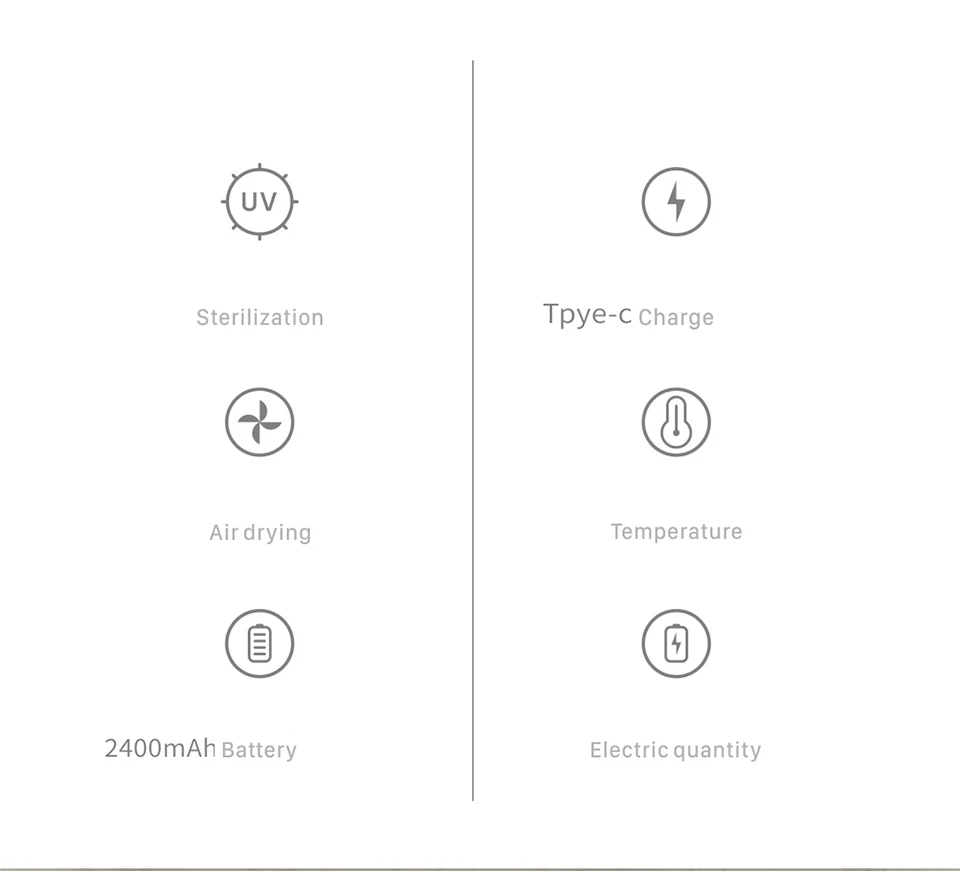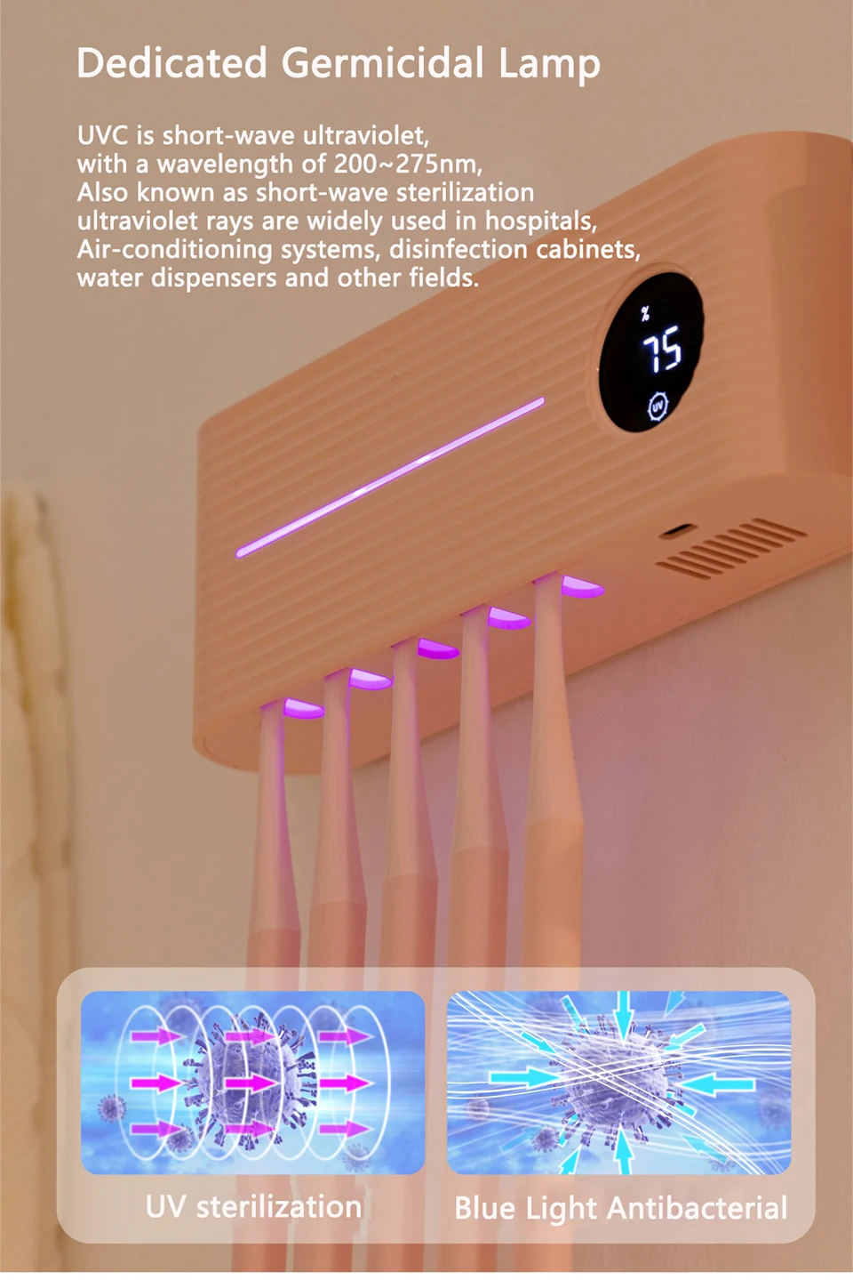 Описание:Зубная щетка с УФ светильник держатель стерилизатора без перфорации, подавляющая бактериальную зубную щетку, антибактериальная коробка, автоматический дозатор зубной пасты-Дизайн включает в себя классическую эстетику и элегантность веера, а также имеетПриятный на ощупь.-АБС-сырье, Приятный на ощупь, устойчив к падению