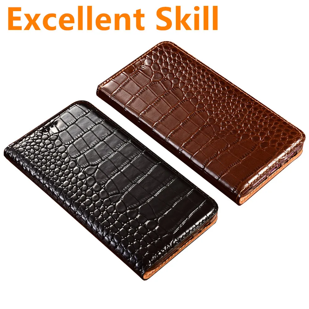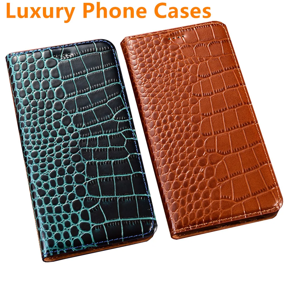 Чехол для телефона из натуральной кожи под крокодиловую кожу с магн...