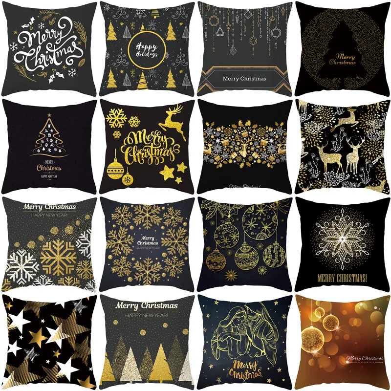 Чехол для подушки в виде рождественской елки, черные, золотые, снеж...
