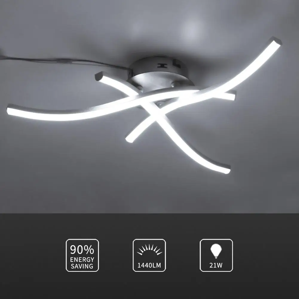 Современный светодиодный потолочный светильник, 21 Вт, 3000 К, Ночной светильник в форме раздвойки, потолочная лампа для гостиной, спальни, декоративная изогнутая дизайнерская лампа
