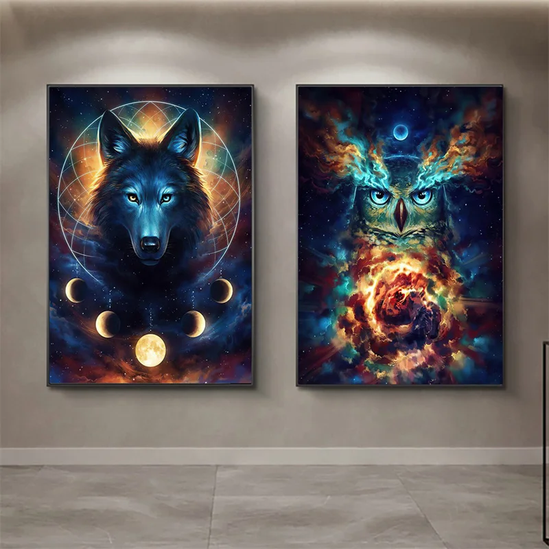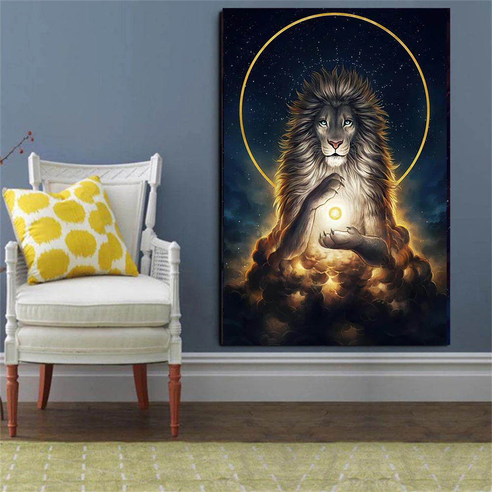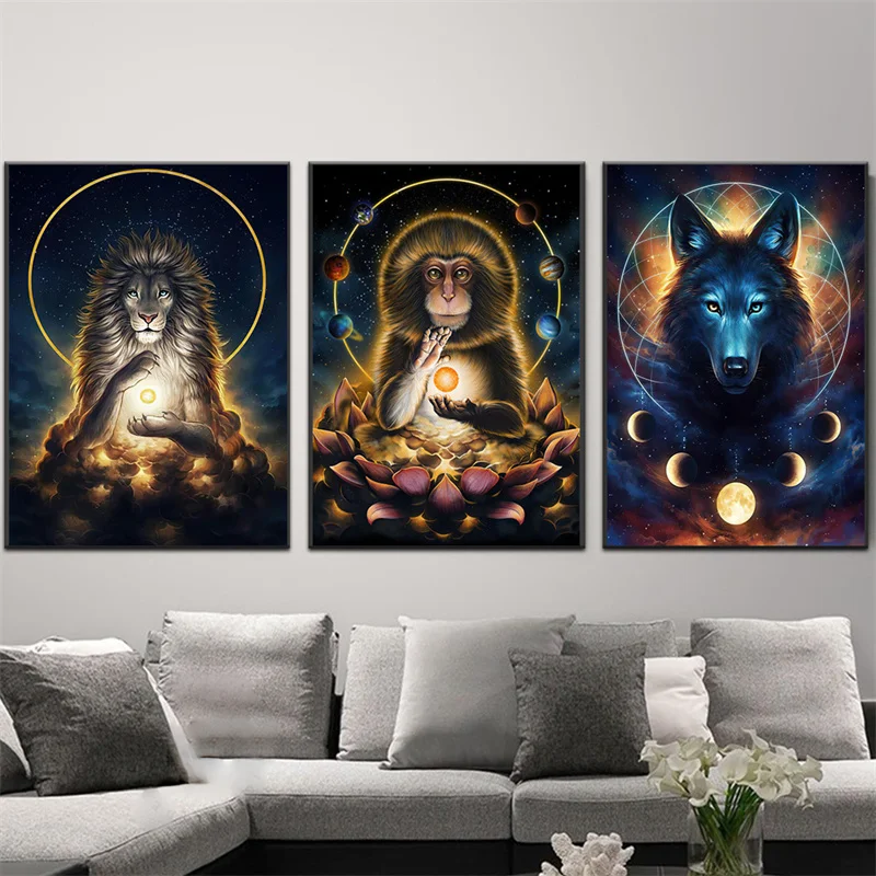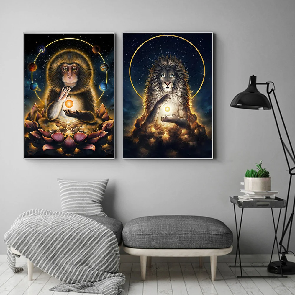 Плакаты с волком, обезьяной, Лев с ореолом и принтами животных, Настенная Картина на холсте для гостиной, детской комнаты, домашний декор