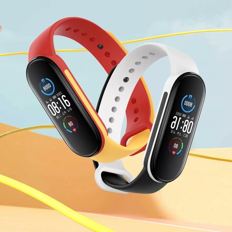 Силиконовые ремешки для Mi Band 6 5 браслет для Xiaomi Mi Band 5 6 двойной цветной ремешок для Amazfit Band 5 Смарт-часы