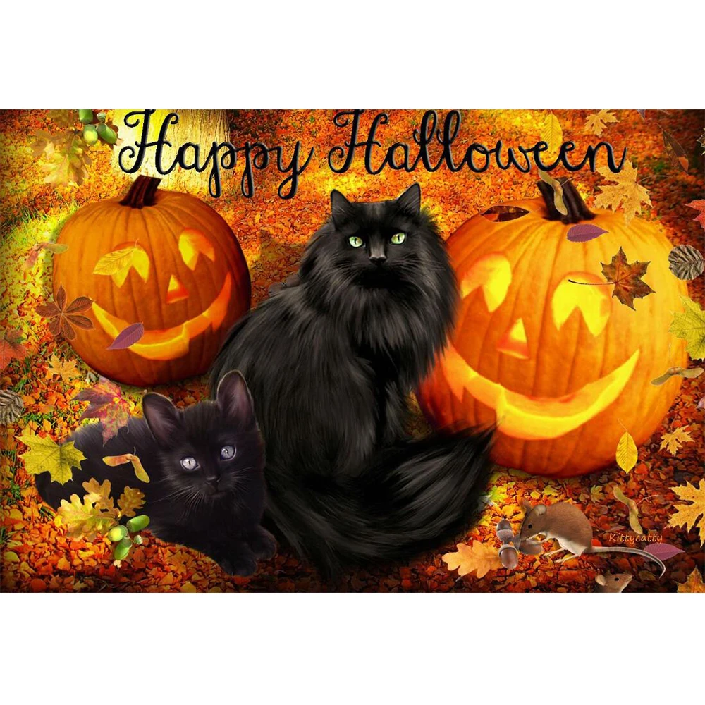Алмазная вышивка 5D Кот, алмазная живопись, животное, вышивка крестиком стразы, мозаика, искусство, Хэллоуин, украшение для дома
