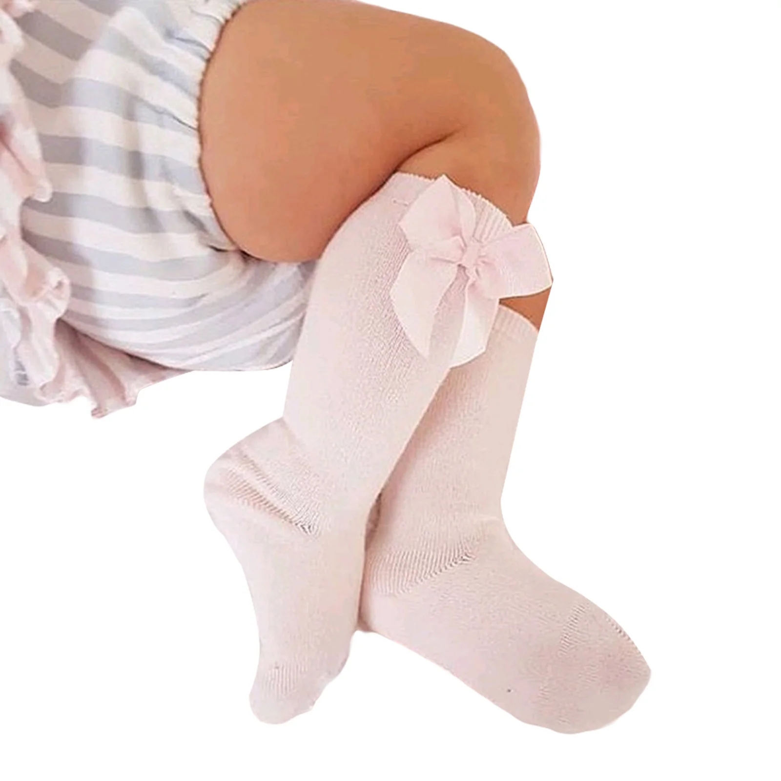 Гольфы для девочек 1-5 лет, однотонные, с бантом, Нескользящие