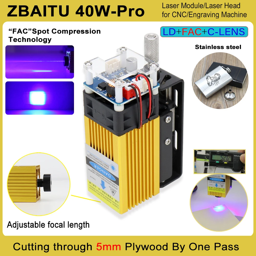 Лазерный модуль, имеет прочный корпус из алюминиевого сплава, высокую скорость гравировки, низкое энергопотребление, стабильность, длительный срок службы.