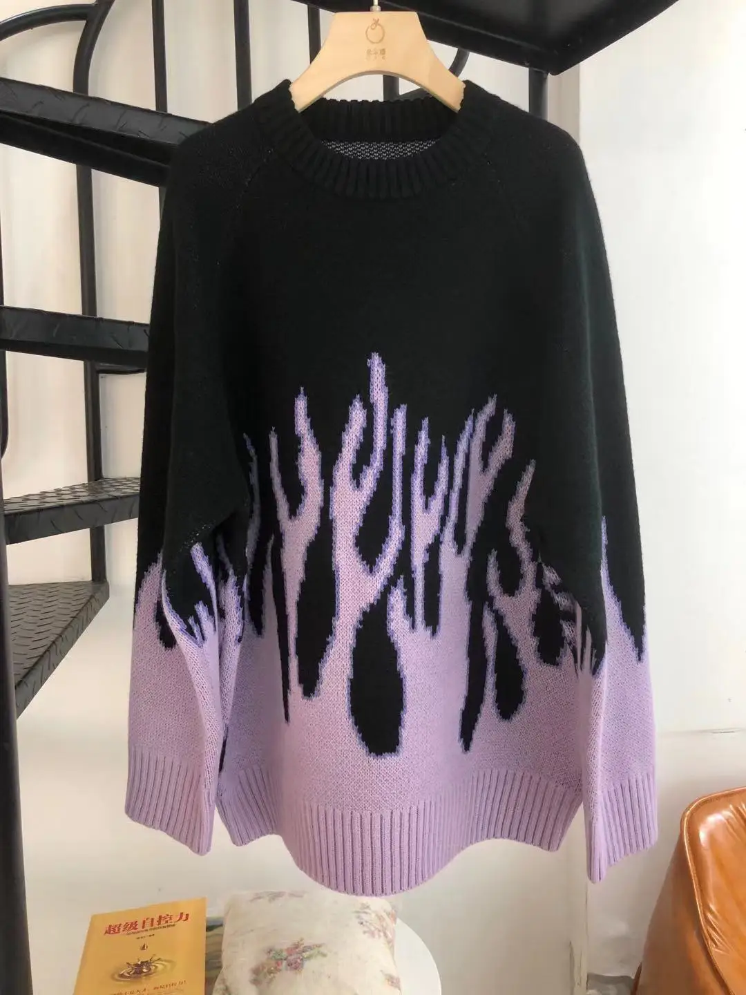 Свитер мужской в стиле ретро, уличная одежда с принтом пламени, в с...